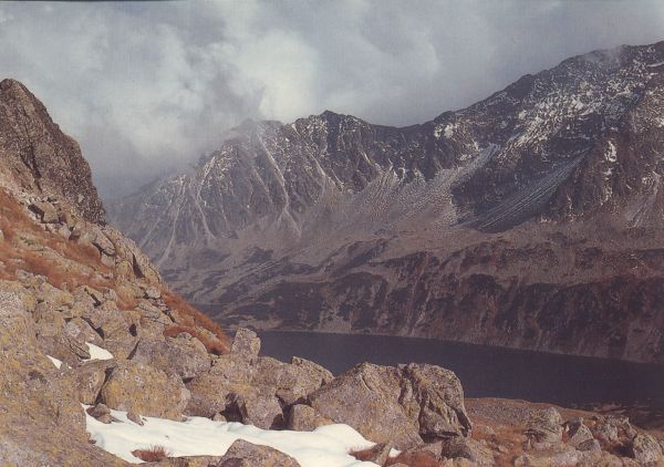 Wielki Staw Polski w Dolinie Pięciu Stawów Polskich widziany z Pustej Dolinki. W tle Opalony Wierch.