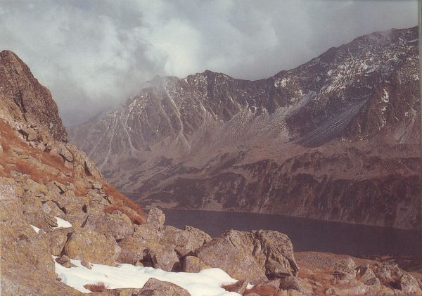 Wielki Staw Polski w Dolinie Pięciu Stawów Polskich widziany z Pustej Dolinki. W tle Opalony Wierch.