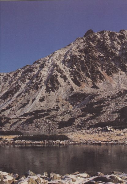 Widok na Opalony Wierch znad Małego Stawu Polskiego w Dolinie Pięciu Stawów Polskich.