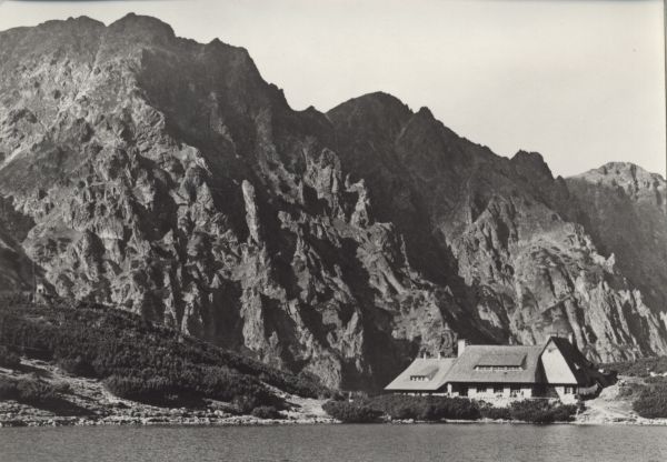 TATRY WYSOKIE. Schronisko Pięciu Stawów na tle Wołoszyna.