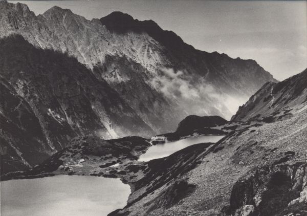 Dolina Pięciu Stawów Polskich. Nad Przednim Stawem Polskim widoczne schronisko. W tle Wołoszyn.