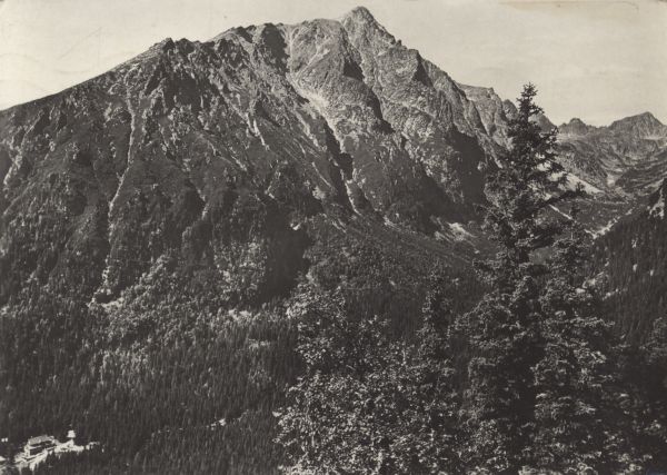 VYSOKÉ TATRY - pohµad z magistrály: chata Kamzík vo Veµkej Studenej doline. V pozadí Slavkovský ątít (2453 m), Divá veľa (2378 m) a Svią»ový ątít (2380 m)
