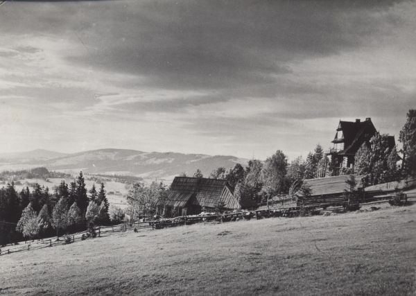 Zabudowania w Toporowej Cyrhli. W tle Gubałówka.
