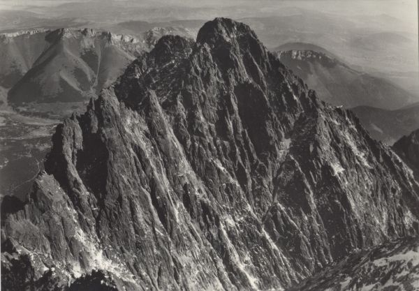 VYSOKÉ TATRY Poh”ad z Lomnického čtítu (2632 m) na KeŸmarskę čtít (2558 m). V pozadí hrebeò Belanskęch Tatier