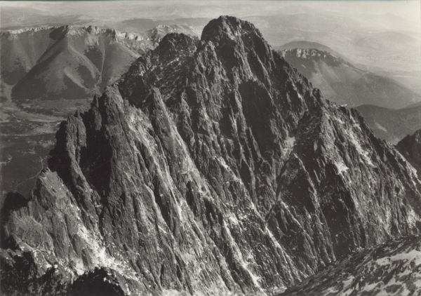 VYSOKÉ TATRY Poh”ad z Lomnického čtítu (2632 m) na KeŸmarskę čtít (2558 m). V pozadí hrebeò Belanskęch Tatier
