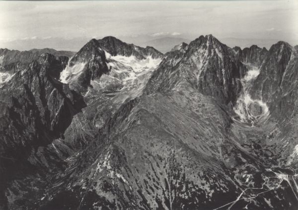VYSOKÉ TATRY Pohµad z lietadla do Malej Studenej Doliny (vµavo, nad ňou Ąadový ątít, 2628 m) a Skalnatej doliny (vpravo, nad ňou Lomnický ątít 2632 m a Keľmarský ątít, 2558 m)