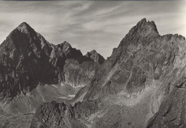 VYSOKÉ TATRY Pohľad do Rumanovej doliny na Vysokú (2560 m), Rysy (2499 m), Nižné Rysy (2438 m) a Zlobivú (2426 m)