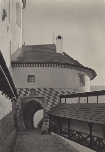 Zamek Orawski. Druga zamkowa brama po naprawie (wg wzoru 16 w.). Tytuł również w j. ros., ang., niem.