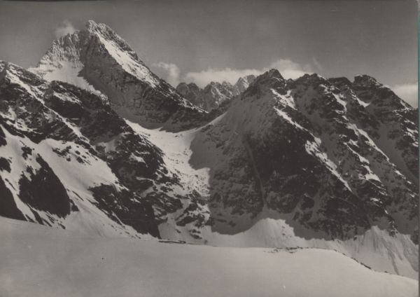 VYSOKÉ TATRY - Vysoká (2563 m) a Kôpky (2362 m) z Volovca Mengusovského. V pozadí hrebeň Končistej.