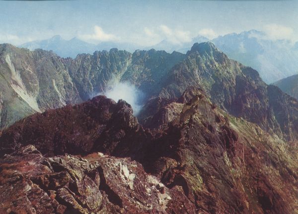 TATRY WYSOKIE. Grań G±sienicowej, Niebieskiej i Zawratowej Turni. W głębi Mały Kozi i Kozi Wierch. Czarne ¦ciany i Granaty.