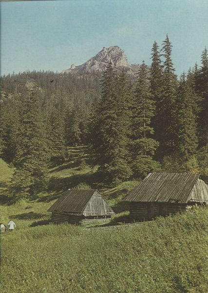 Szałasy na Polanie Strążyskiej. W tle Sarnia Skałka.