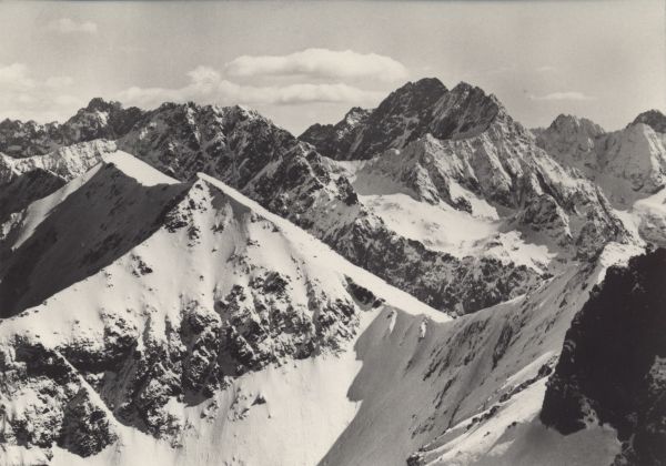 VYSOKÉ TATRY - pohµad zo ©irokej (2221 m): v popredí ®abí vrch Javorový (2206 m), v pozadí Bradavica (2492 m), Svią»ový ątít (2380 m), Poµský hrebeň (2208 m) a Stalinov ątít (2663 m)