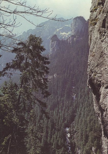 TATRY ZACHODNIE Dolina Kościeliska. Skałki przy wylocie jaskini Mroźnej.