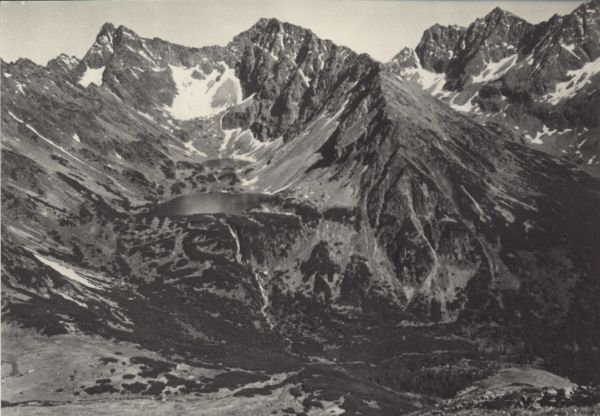 TATRANSKĘ NÁRODNĘ PARK. Poh”ad do doliny Temnęch Smreèín od západu. V”avo Èubrina (2376 m), ïalej Kôprovskę čtít (2370 m). Vpravo Hlínská dolina, nad òou ©trbskę čtít (2385), Vyčné a NiŸné Temnosmreèinské pleso s Vajanského vodopádom