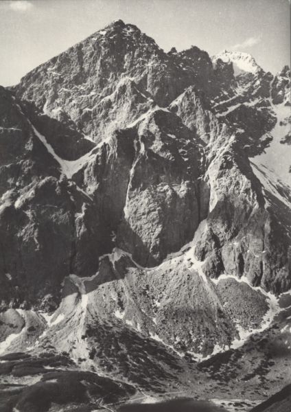 VYSOKÉ TATRY Severneá stena Malého Keľmarského ątítu (2513 m). V pozadí Lomnický ątít (2632 m)