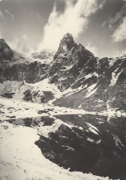 Tatrzański Park Narodowy [Słowacja]. Widok znad Zielonego Stawu Kieżmarskiego na Jastrzębią Turnię. Na lewo od niej Kołowy Szczyt nad Doliną Jastrzębią.