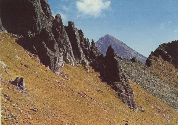 ČSSR - VYSOKÉ TATRY - HIGH TATRAS Velická dolina. Pohľad ponad sedlo pod Dvojitou vežou na Slavkovský štít (2452 m)