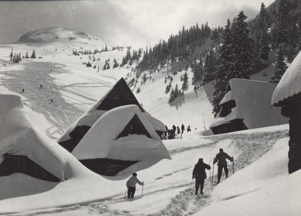 Trasa zjazdu z Kasprowego Wierchu na Halę Goryczkową. Na pierwszym planie szałasy.