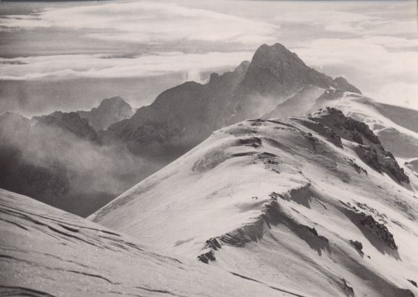 Widok z Kasprowego Wierchu na Świnicę w zimie.