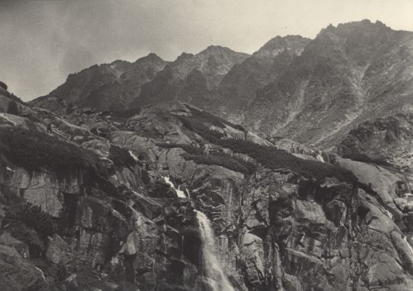 TATRANSKÝ NÁRODNÝ PARK Dolina Mlynica, vodopád Skok (1800 m), v pozadí hrebeň Bášt