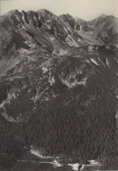 Rohacze - widok z Rakonia na Trzy Kopy, w dole schronisko Tatliaka.