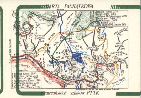 Karta pami±tkowa z tatrzańskich szlaków PTTK - szkic mapy okolic Hali G±sienicowej.