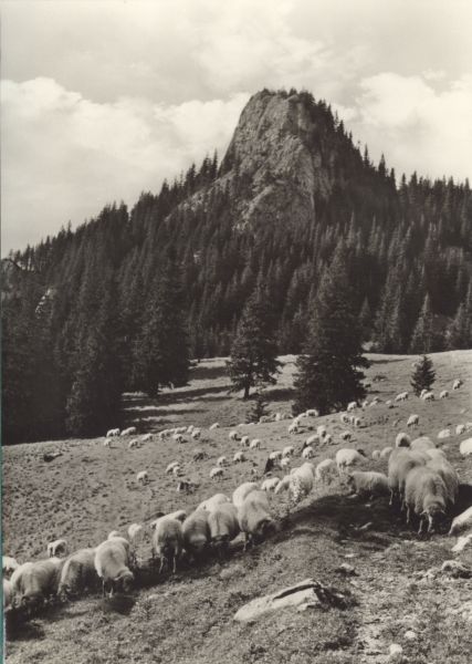Owce na Hali Miętusiej. W tle Zawiesista Turnia.