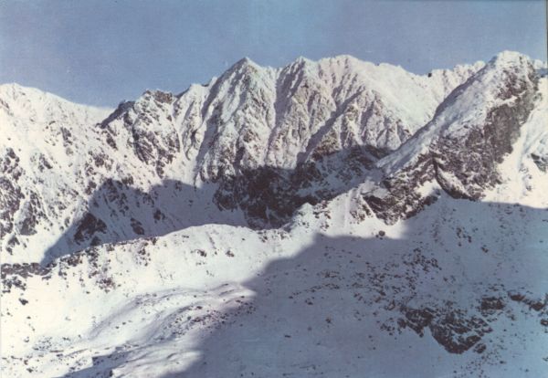 Granaty w zimowej scenerii. Z prawej Kościelec, w dole Karb.