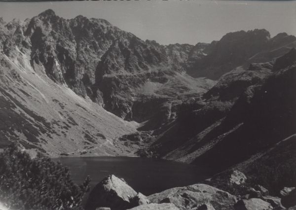 Widok na Czarny Staw Gąsienicowy z podejścia na Mały Kościelec. W tle Granaty i Kozi Wierch.