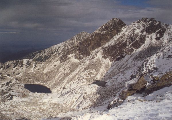 Żółta Turnia i Ko¶cielec widoczne z Liliowej Przełęczy. W dole Długi Staw G±sienicowy i Zadni Staw G±sienicowy.