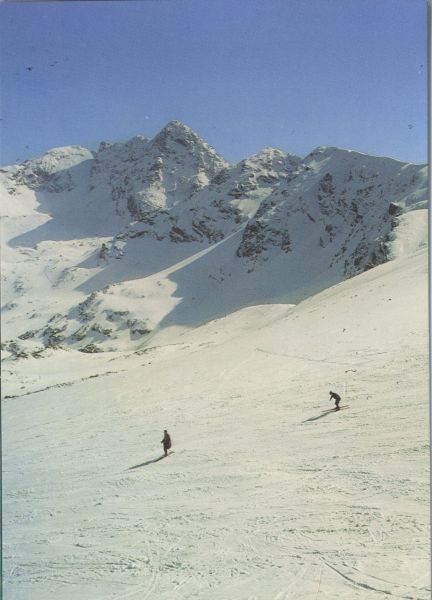 Narciarze w Kotle Kasprowym. W tle Świnica.