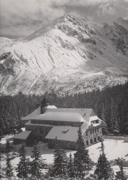 Schronisko PTTK Murowaniec na Hali G±sienicowej zim±. W głębi Żółta Turnia.