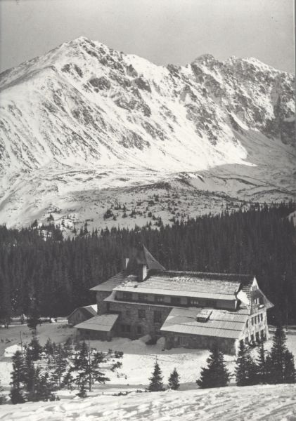 Schronisko PTTK Murowaniec na Hali G±sienicowej zim±. W głębi Żółta Turnia i Granaty.