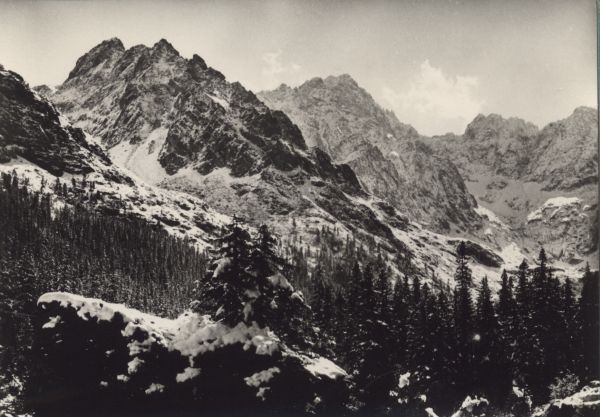 Otoczenie Doliny Białej Wody zim±: w przodzie Hruba Turnia, w tle Zadni Gerlach, Batyżowiecki Szczyt i Kaczy Szczyt.