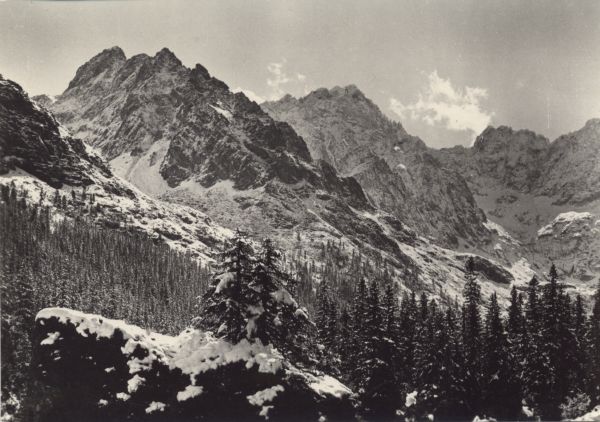 Otoczenie Doliny Białej Wody zim±: w przodzie Hruba Turnia, w tle Zadni Gerlach, Batyżowiecki Szczyt i Kaczy Szczyt.
