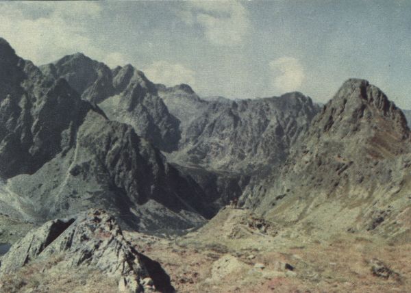 Tatranský národný park Od ľava: Rysy (2503 m), Nižné Rysy (2438 m), Vyšný Žabí štít (2087 m) a Mlynár (2168 m). Vpravo v popredí Hrubá veža (2096 m)
