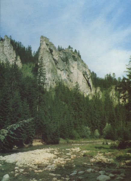 Siwiańskie Turnie w Dolinie Chochołowskiej. W dole płynie Chochołowski Potok.