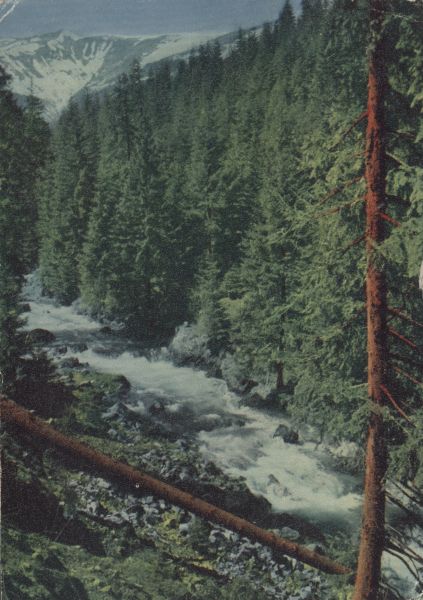 Chochołowski Potok w Dolinie Chochołowskiej. W tle Rakoń.