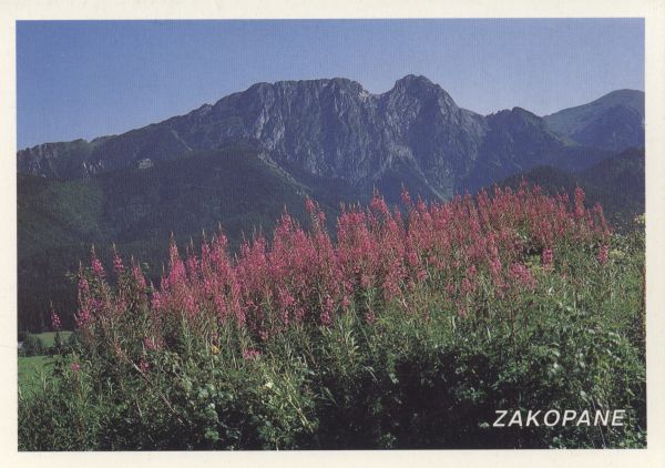 Giewont widziany ze zbocza Gubałówki. Na pierwszym planie wierzbówka kiprzyca (Chamaenerion angustifolium).