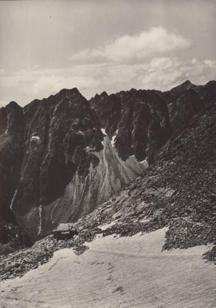 VYSOKÉ TATRY - útulňa pod sedlom Váha Hrebeň Báąt so Satanom (2432 m), v pozadí Kriváň (2496 m)