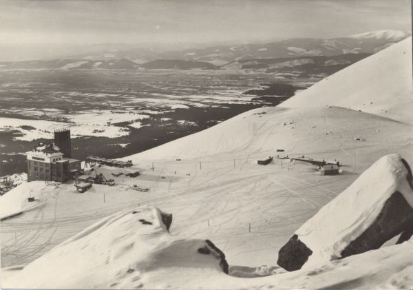 Vysoké Tatry - Skalnaté pleso. Pohľad na stanicu lanovky a na lyžiarsky terén.