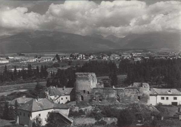 Ruiny zamku w Liptowskim Hradku. W tle Liptowski Peter i Tatry Zachodnie.