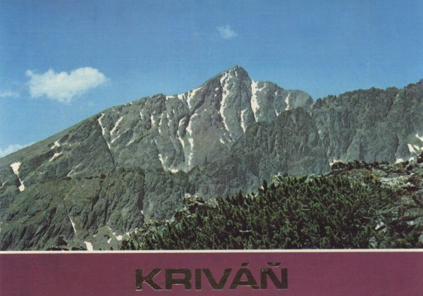 Widok na Krywań z Siodełkowej Kopy, przed nim Jamskie Turnie. Pod zdjęciem nadruk: KRIVÁŇ.