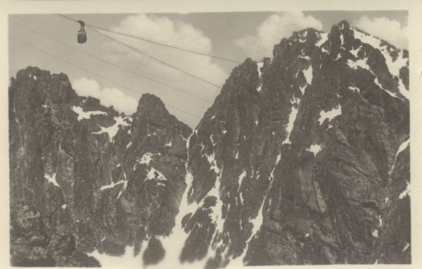 Wagonik kolei linowej na Łomnicę nad Dolin± Łomnick±. Z prawej Kieżmarski Szczyt.