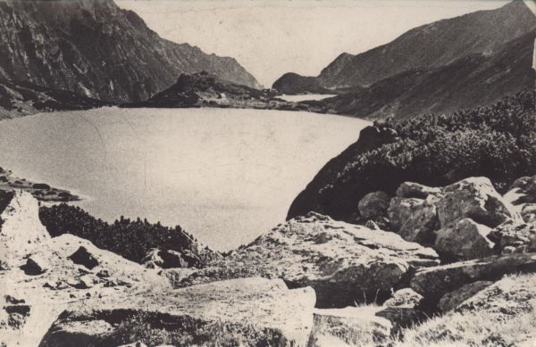 Pocztówka użyta w obiegu pocztowym, korespondencja. Logo wydawcy. Dodatkowo pieczęć: "DOLINA PIĘCIU STAWÓW POLSKICH w TATRACH. SCHRONISKO".