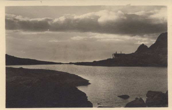 Ranek nad Pośrednim Stawem Spiskim. W tle Schronisko Téryego.