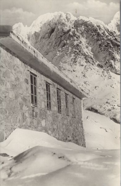 Schronisko Téryego w Dolinie Pięciu Stawów Spiskich w zimie. W tle Durny Szczyt.