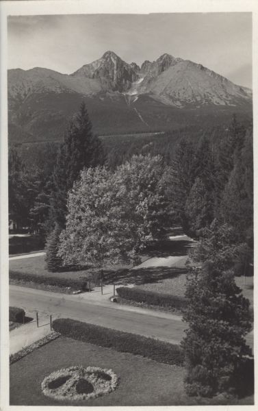 VYSOKÉ TATRY - Tatr. Lomnica. Kúpelnę park, v pozadí Lomnickę čtít.