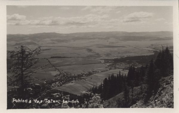 Widok na Lendak ze zboczy Bujaczego Wierchu. (Na dole po prawej stronie wpisany tytuł pocztówki)