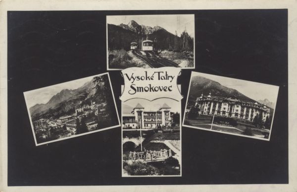 Willa w Starym Smokowcu. Pomiędzy zdjęciami napis: Vysoké Tatry. Smokovec.